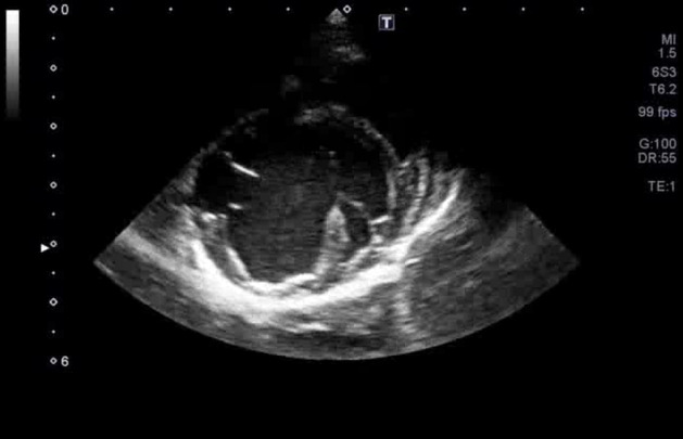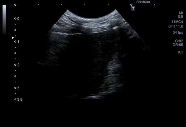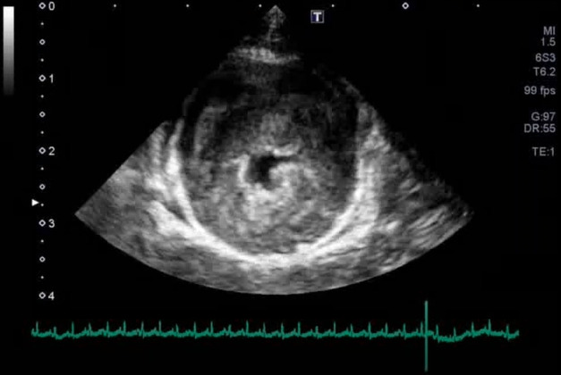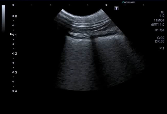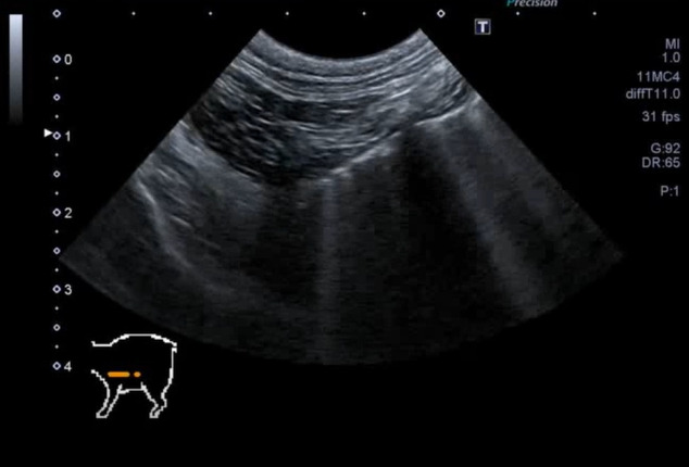 図3C 心原性肺水腫の猫における肺超音波画像