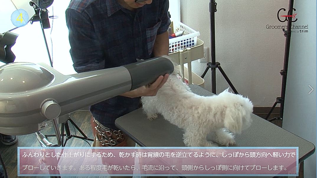 trim2月号連動動画【毛質・スタイルで使い分けるマルチーズのトリミングテクニック ③ペットカット ブロー】