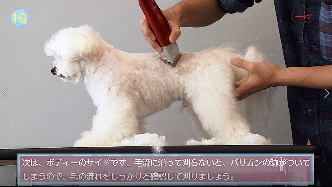 trim2月号連動動画【毛質・スタイルで使い分けるマルチーズのトリミングテクニック ④ペットカット カット(バリカン)】